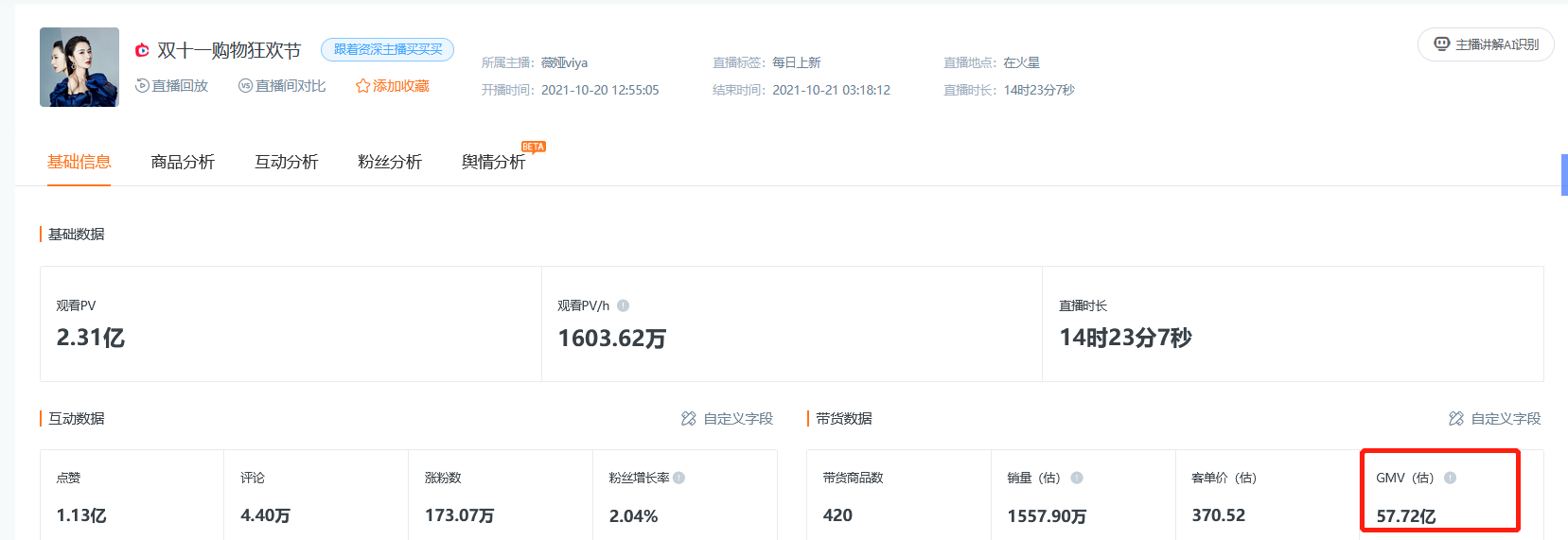 新腕儿 10月21日消息,昨晚8点,李佳琦、薇娅直播间开启预售直播,截至23:00,观看人次均突破2亿。第三方数据显示,最终李佳琦与薇娅分别上架超400款商品,直播时长超12小时,斩获99.66亿GMV和57.72亿元GMV。